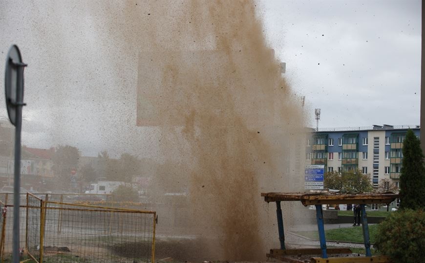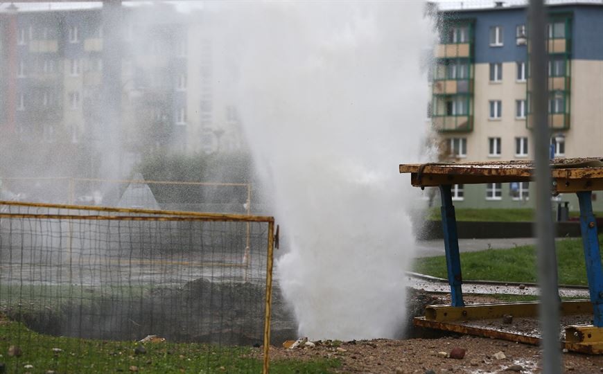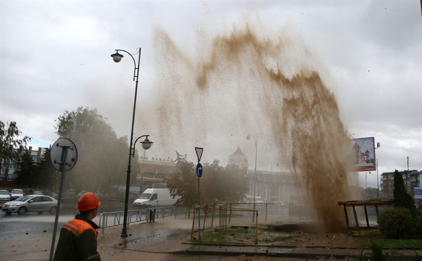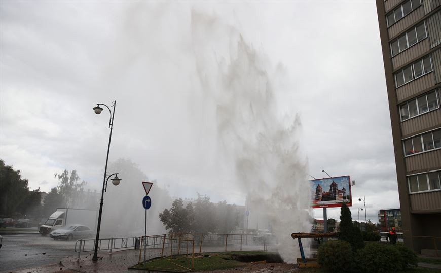 В Гродно струя воды из прорванной трубы достигала высоты в несколько этажей.