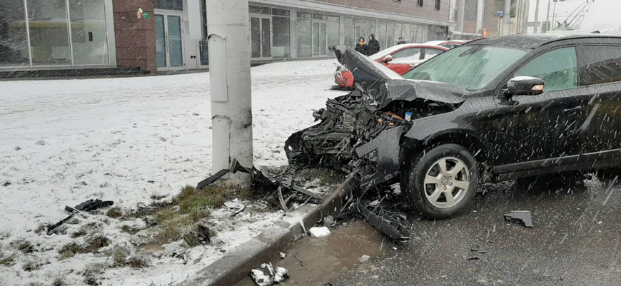 В Минске легковушка врезалась в светофор и столкнулась с двумя машинами